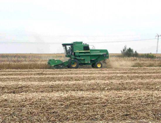 在浩腾农业有限公司内,一辆约翰迪尔进口收获机械格外显眼,不但能收割、摘穗、脱粒工序一气呵成,还能实现直接测产、测水和容重。
