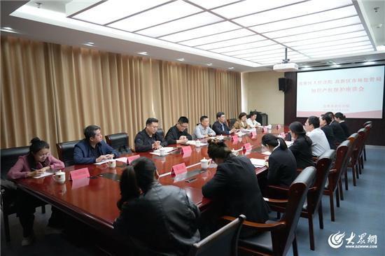 大众网记者 包欣悦 通讯员 白丽娜 淄博报道10月14日,淄博高新区法院与淄博市、区两级市场监管局联合召开知识产权保护工作座谈会。淄博市市场监管局知识产权保护科一级主任科员窦波、科长郭晓斌,知识产权促进科科长张逢春;高新区市场监管局四级职员李家传、副局长刘伟及相关科室负责人;高新区法院副院长李爱学及相关部门(团队)负责干警参加会议。